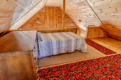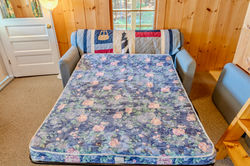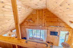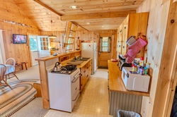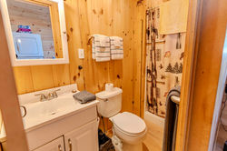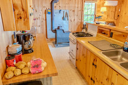 This camp is just steps from Moosehead Lake with its own private yard. A wrap around covered porch makes it nice for relaxing outdoors, or have a campfire in the fire pit. Perfect for ice fishing or bringing your boat to enjoy the lake when ice is out. We've set it up to fit groups of fishermen or large families, with a bunk bed in the bedroom on the main level (queen bed for bottom bunk and a full bed for the top bunk), as well as a pull out twin trundle. Upstairs in the loft has one full bed and one twin. The sofa in the living room also pulls out into a queen bed, but we don't recommend it sleeping over 8 people because there is only one bathroom. There is no full bathtub, only a stand up shower.